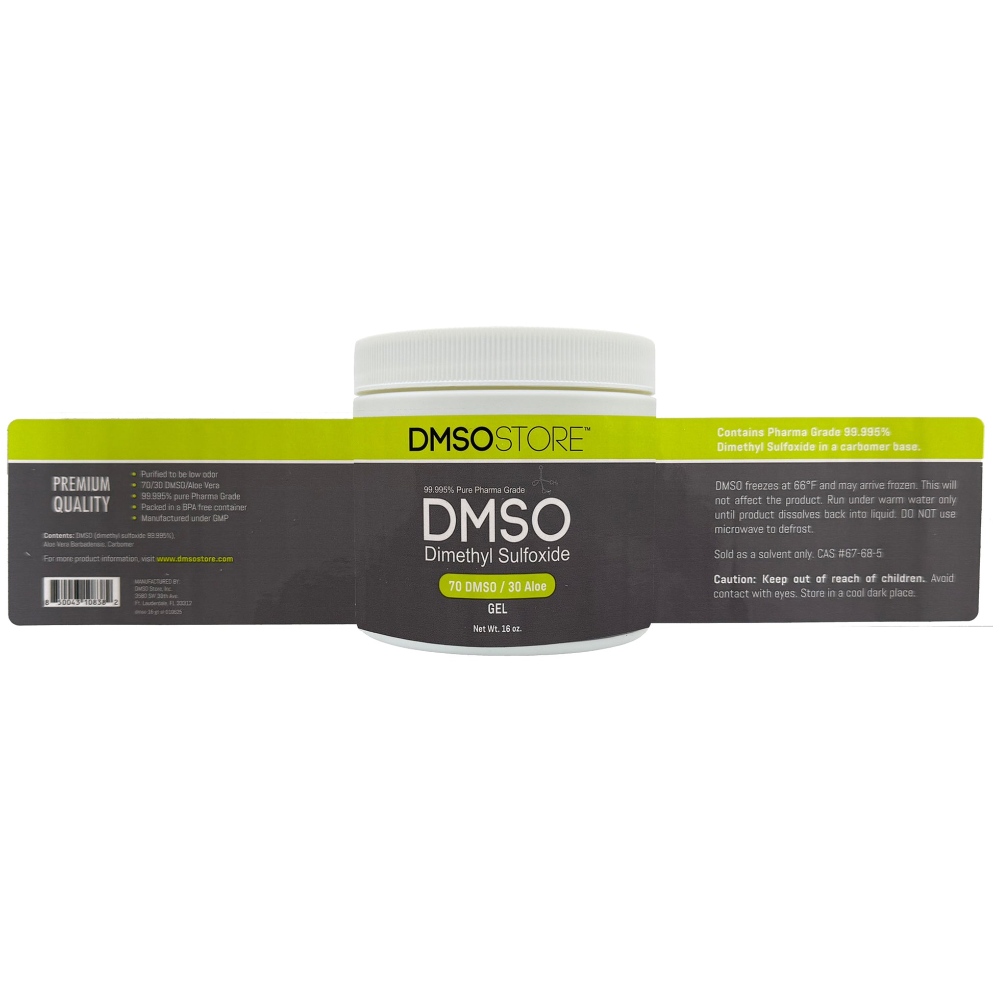 70/30 DMSO 16 oz. Gel with Aloe Vera - 99.995% Pure Pharma Grade Dimethyl Sulfoxide in BPA-Free Plastic Jar